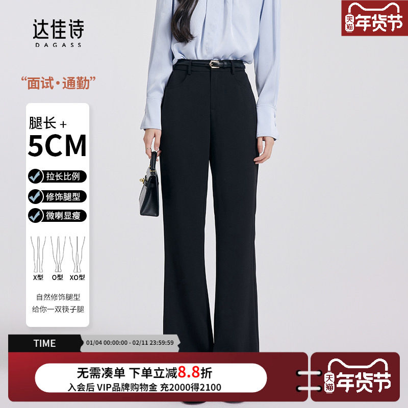 达佳诗黑色微喇裤子女秋款轻职场通勤喇叭裤正式场合小个子西装裤