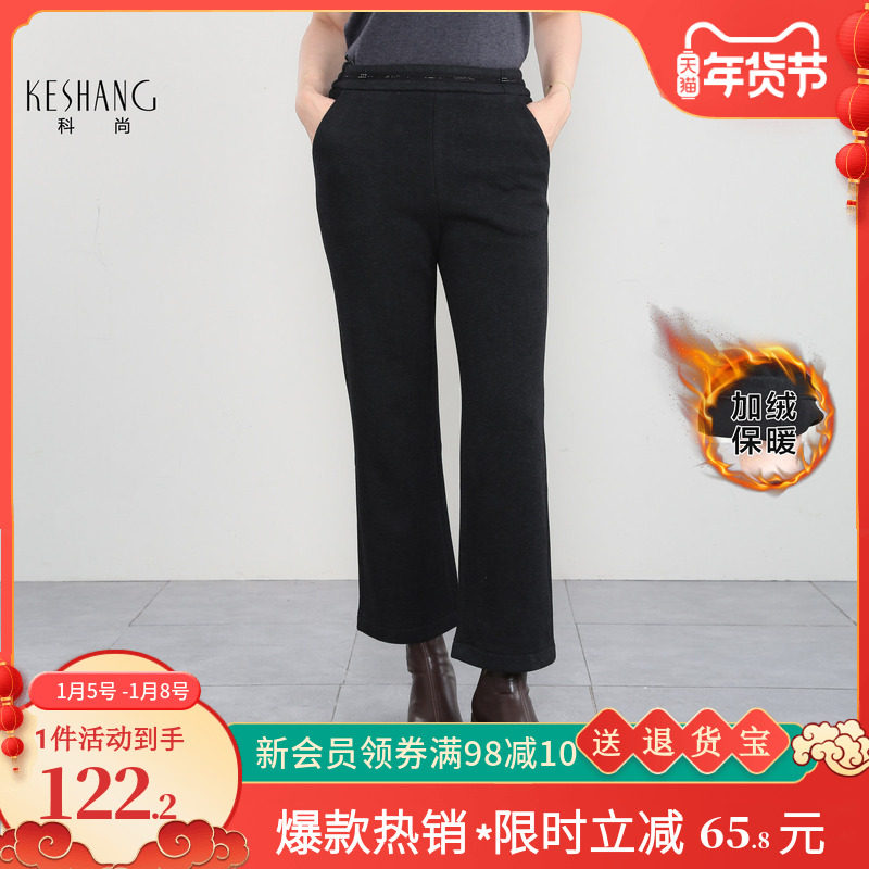 科尚黑色微喇裤女2025冬季新款高腰加绒直筒裤显瘦百搭长裤子加厚