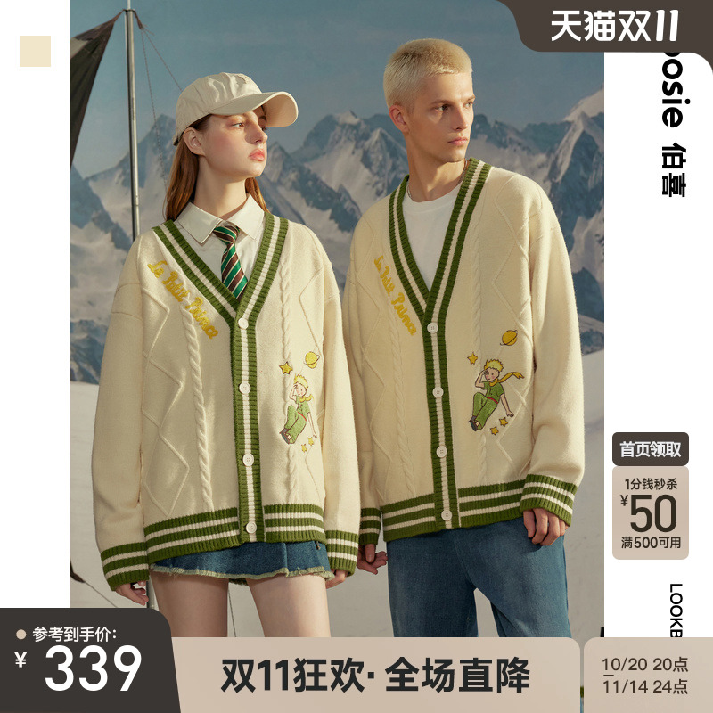 【小王子】bosie2025年冬季新款撞色开衫毛衣男情侣毛衫针织衫潮