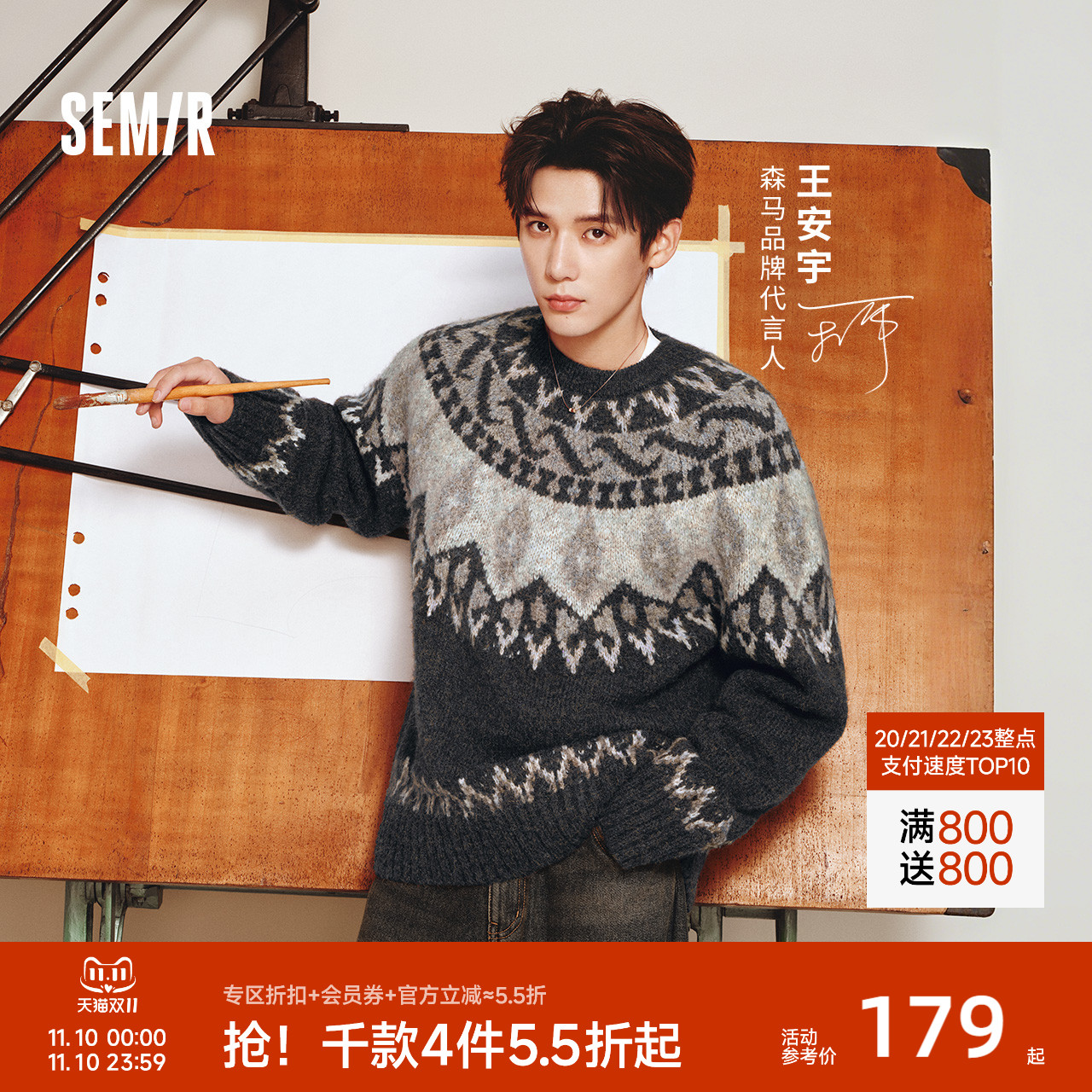 王安宇同款森马毛衫男费尔岛提花针织衫25冬季情侣复古毛衣幻彩纱