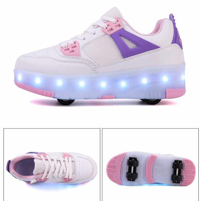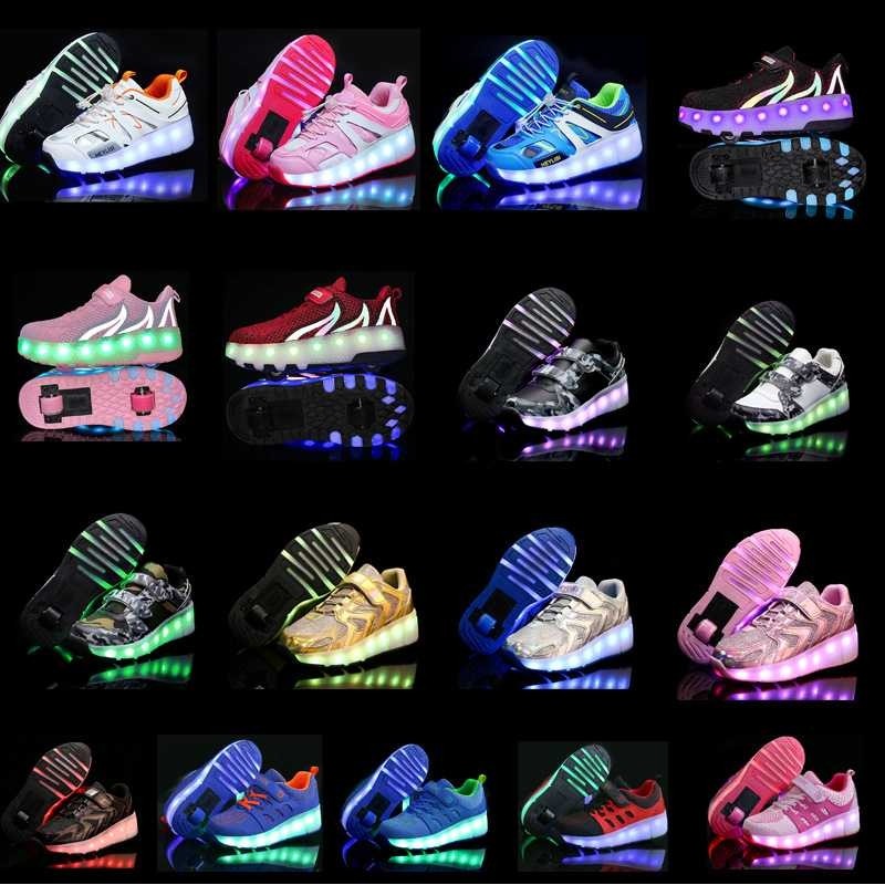 儿童暴走鞋双轮充电LED发光七彩灯鞋 四轮轮滑鞋休闲运动鞋轮子鞋