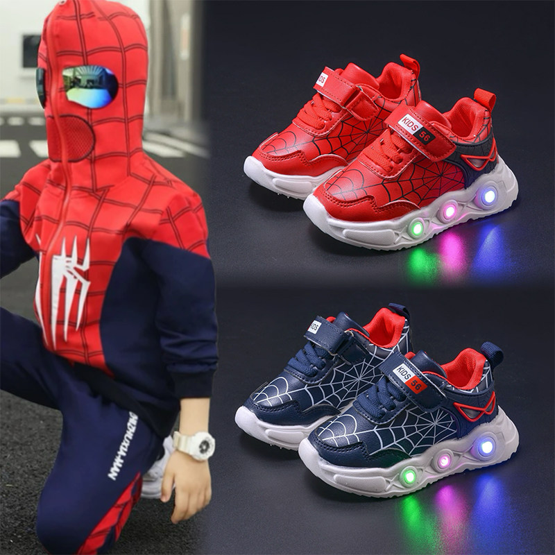 外贸春秋男女童运动鞋LED闪灯发光鞋儿童卡通透气漫威蜘蛛侠休闲6