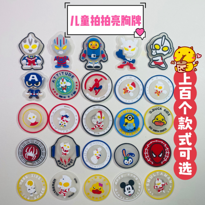 儿童防水LED灯拍拍亮奥特曼发光胸牌衣服贴男女孩闪灯鞋装饰配件