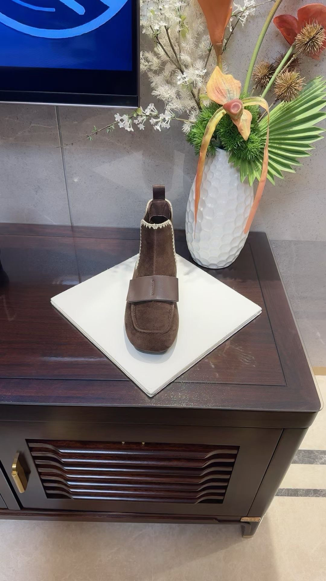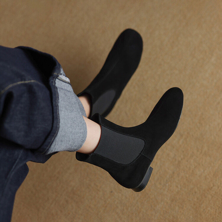 2024年秋冬季新款平底女靴子真皮羊皮绒面短靴加绒翻毛皮切尔西靴