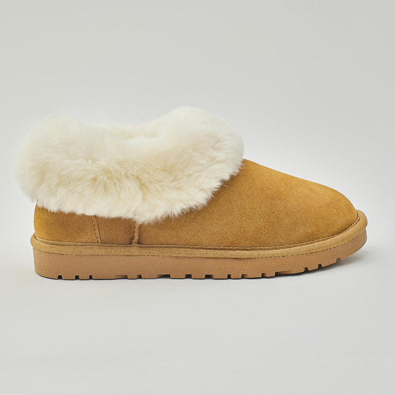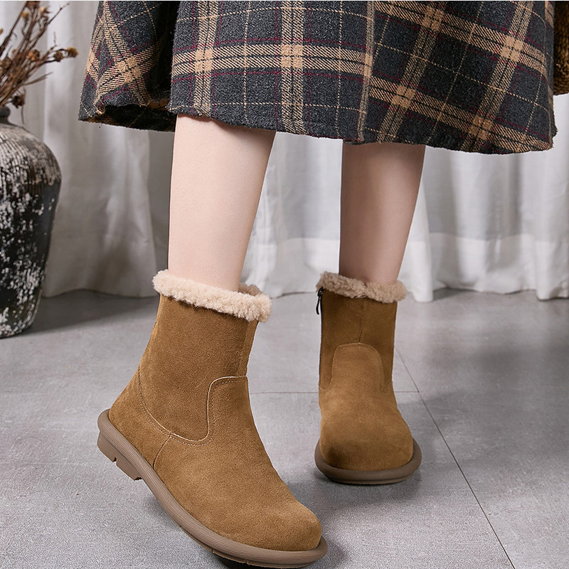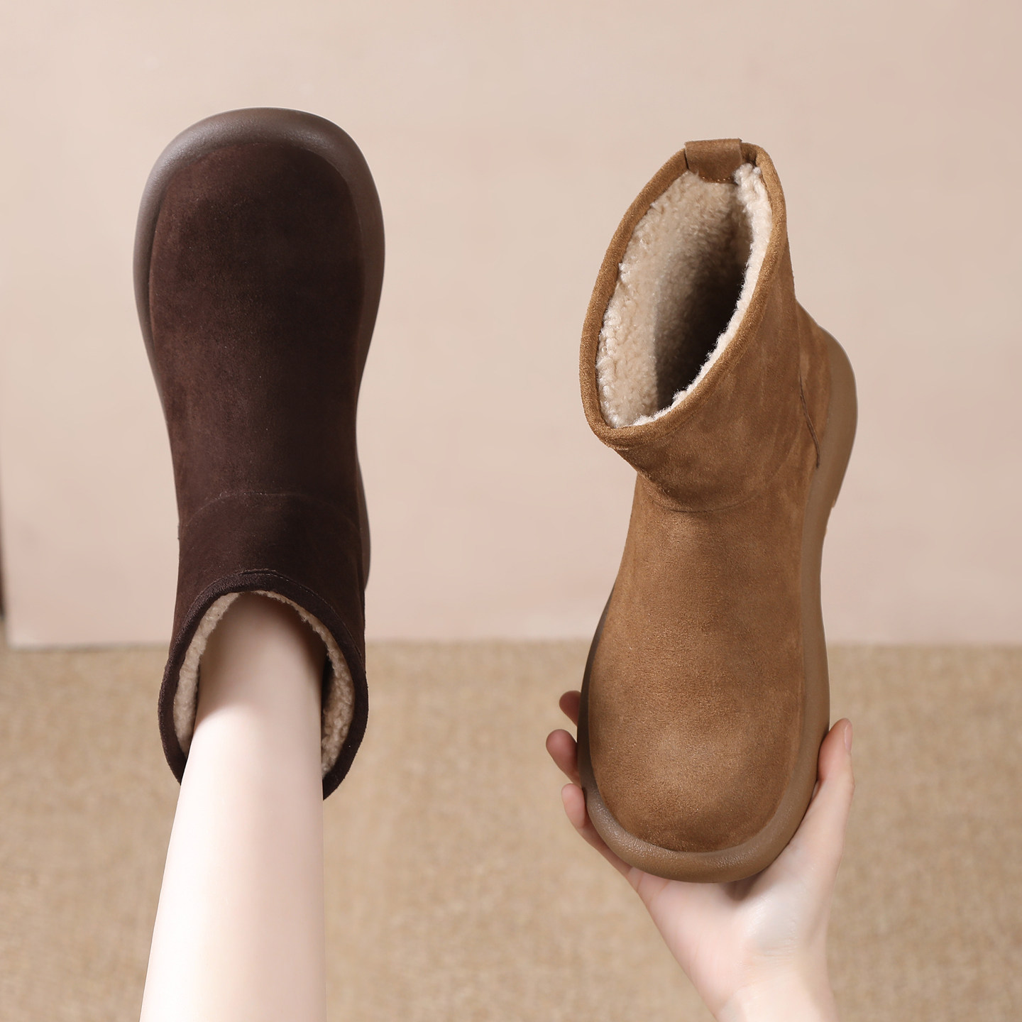 翻毛皮棉靴圆头女鞋软底磨砂真皮短靴女平底妈妈鞋中年女士小靴子