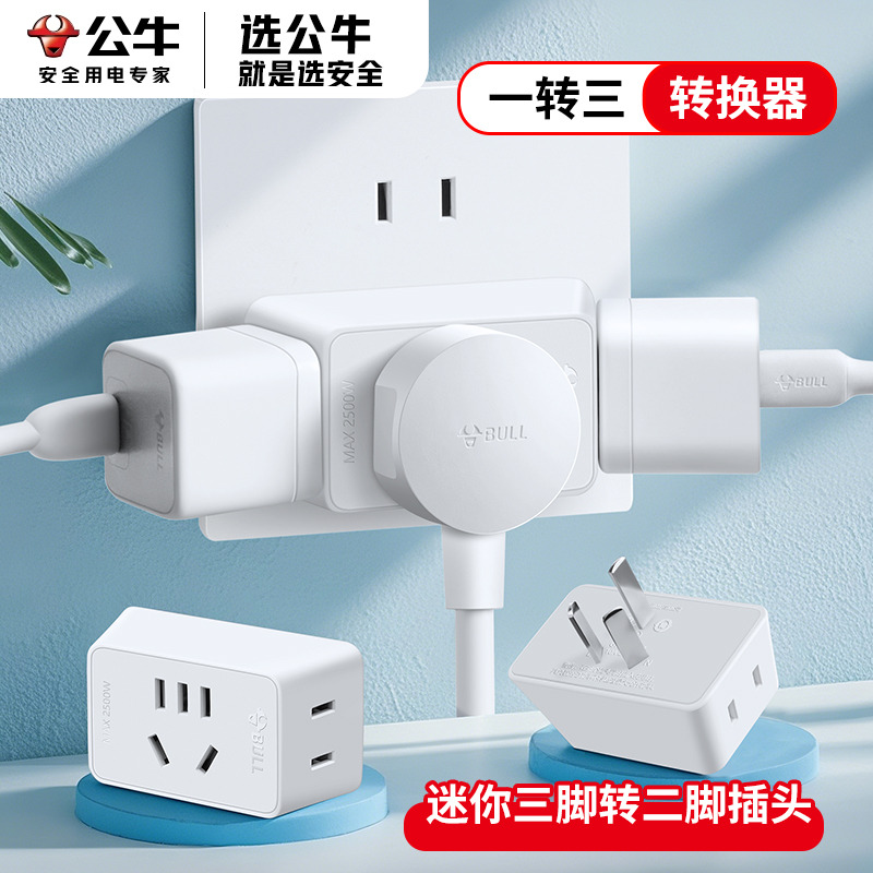 公牛迷你一转三转换插头三孔转二孔插座转换器一分三多功能转换头