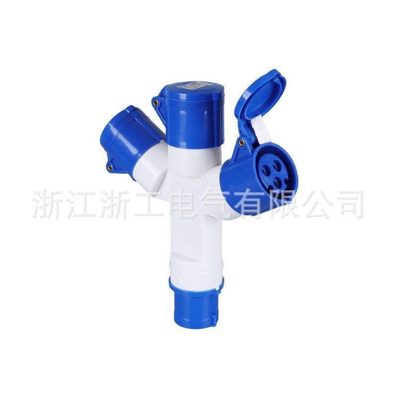 2023一分三多功能工业插座3芯32A 一进三出Y型防水航空插座32A3P