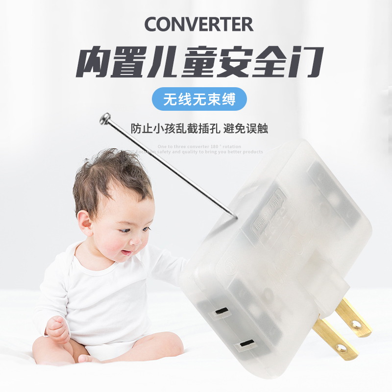 180插座一转三转换器多功能一分三国标转换插头电视柜缝隙插排插