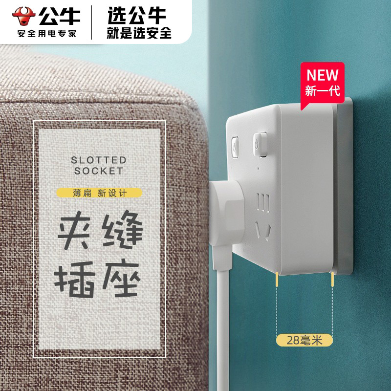 公牛超薄靠墙插座转换器沙发后后面缝隙扁平贴墙转向一分四多插头