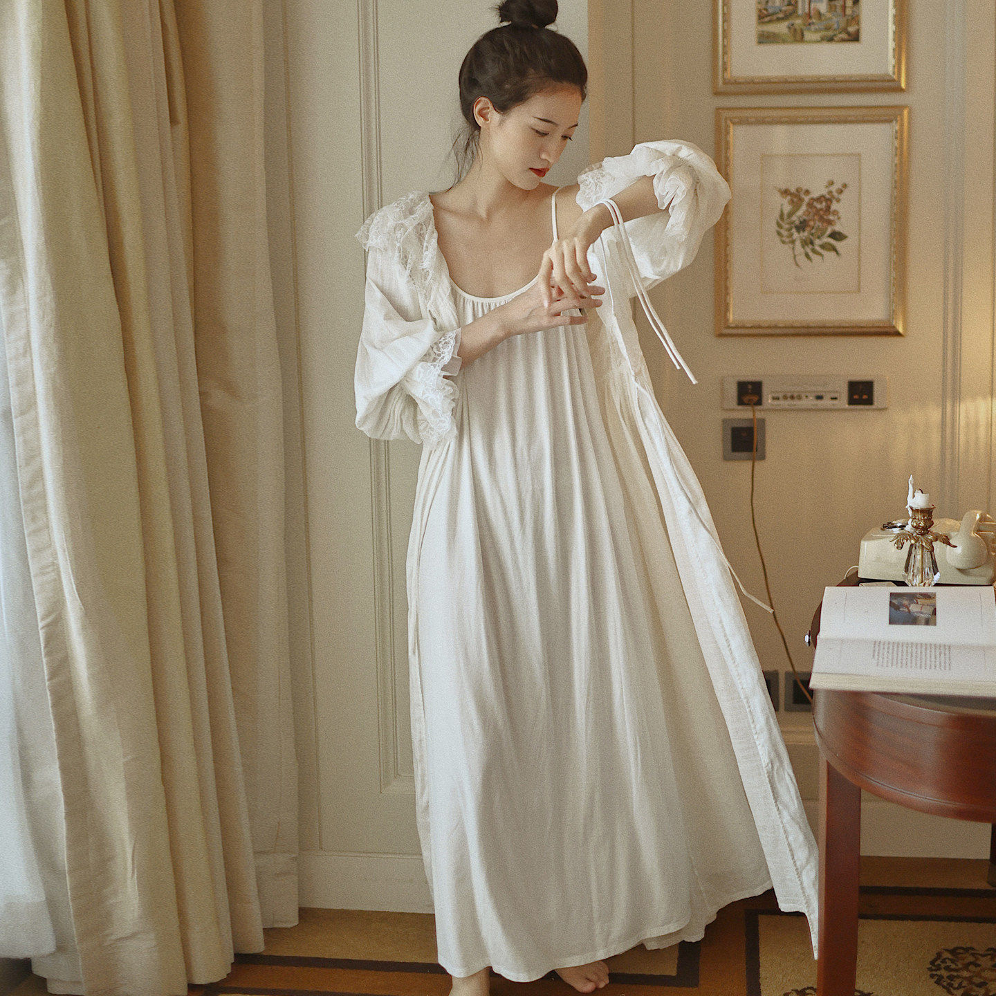 莫代尔吊带睡衣两件套宫廷风甜美公主风睡裙带胸垫女性感纯棉睡袍