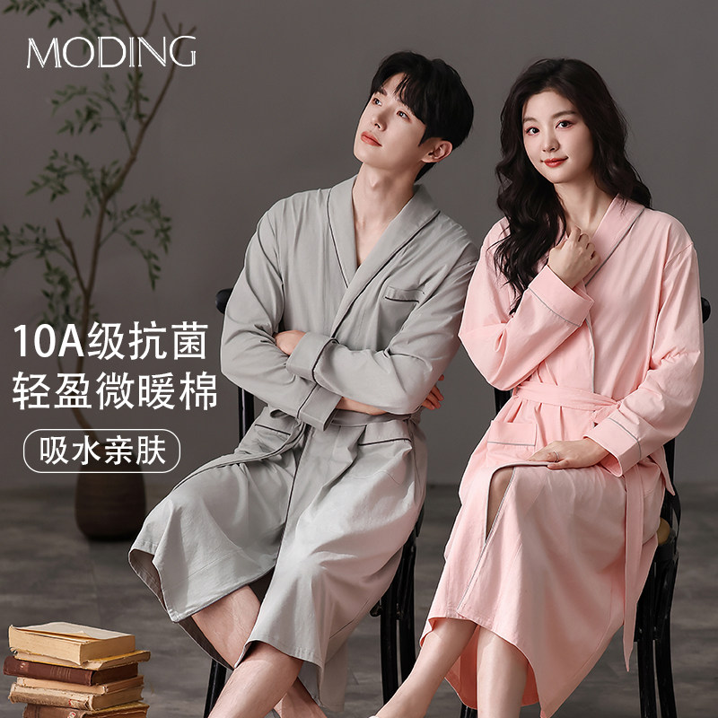 日系情侣纯棉睡袍四层纱布加厚长袖浴袍简约宽松春秋冬男女家居服