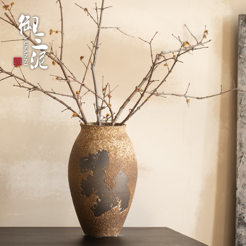 陶美集日式手工拉坯粗陶粉色陶泥铁斑古朴小清新花瓶不漏水小花器