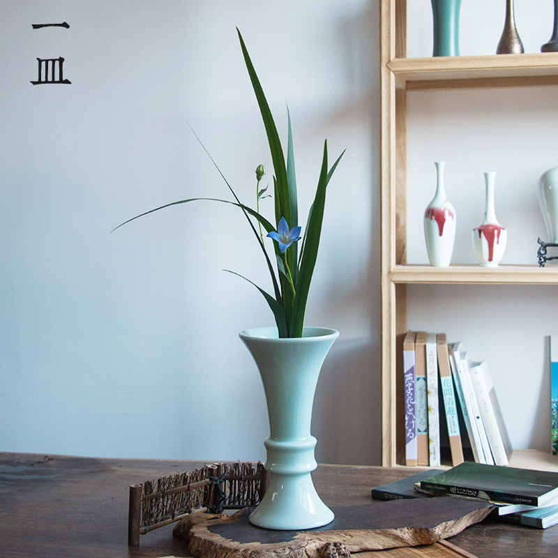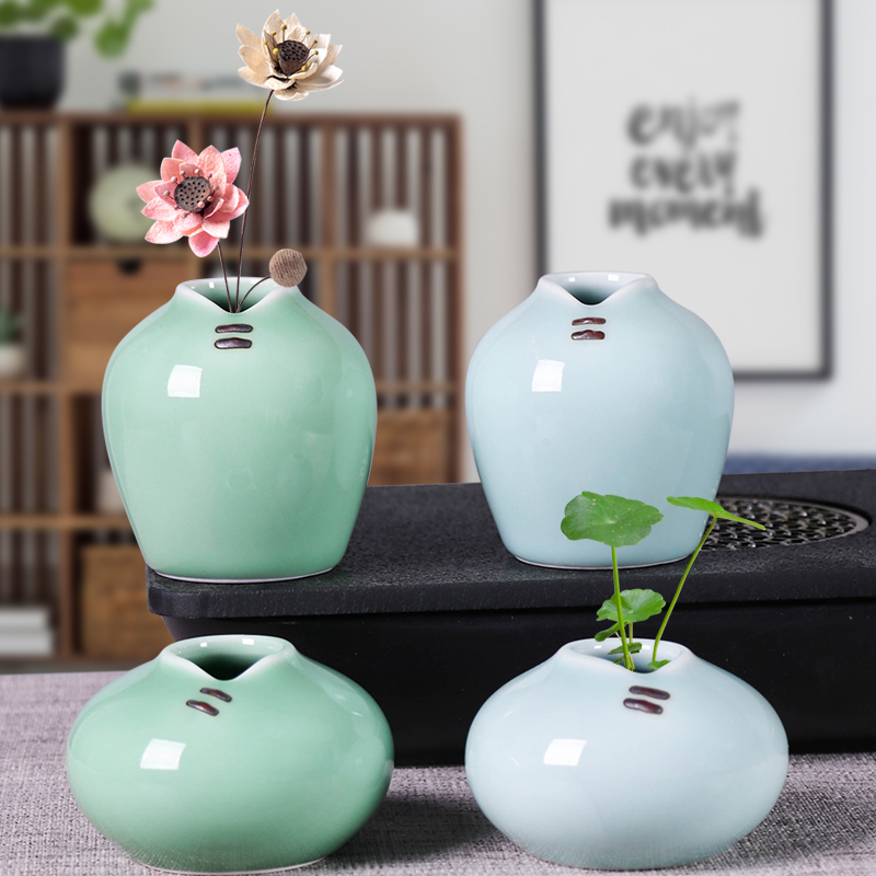 简约青瓷创意现代小清新花瓶客厅书房茶盘装饰陶瓷花器铜钱草花插
