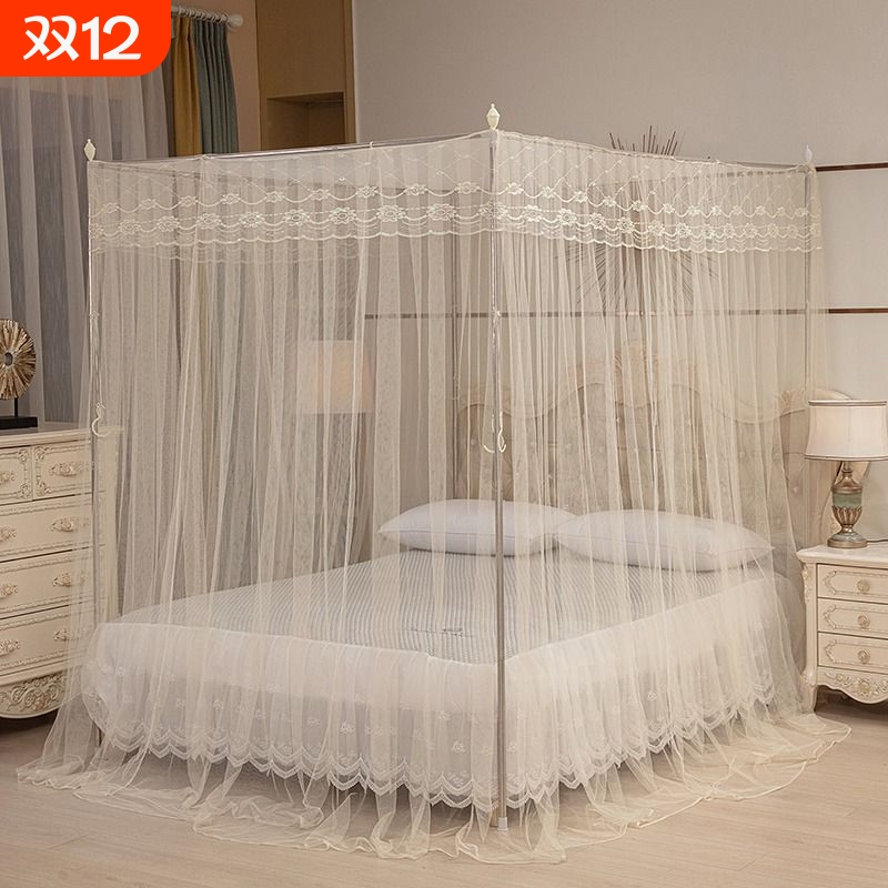 蚊帐家用1.5m床传统老式方顶1.8米1.6公主风单门宫廷落地式支架杆