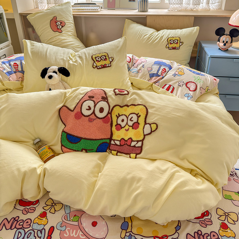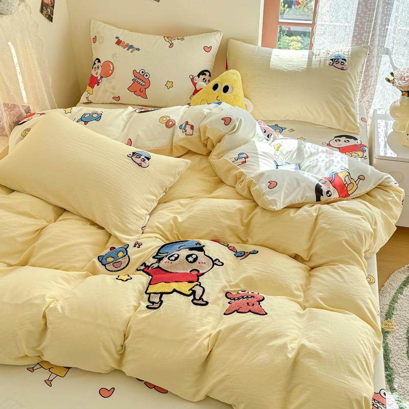 哆啦A梦毛巾绣四件套非全棉纯棉可爱被套床单学生宿舍床上三件套4
