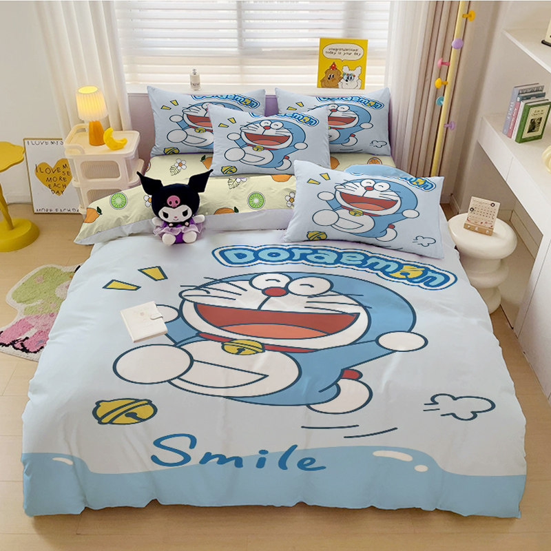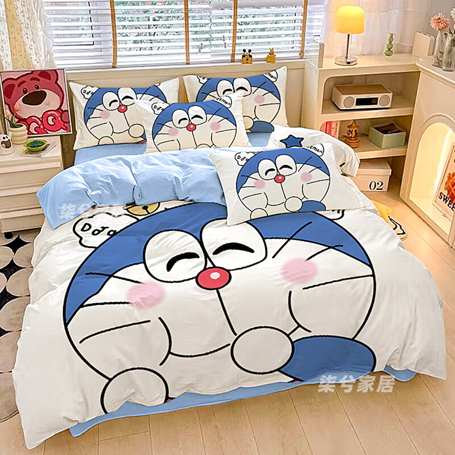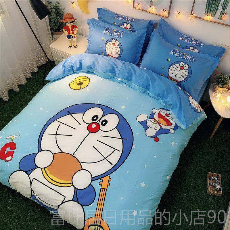 ins风超柔卡通哆啦A梦水洗棉四件套非纯棉全棉学生宿舍床单三件套