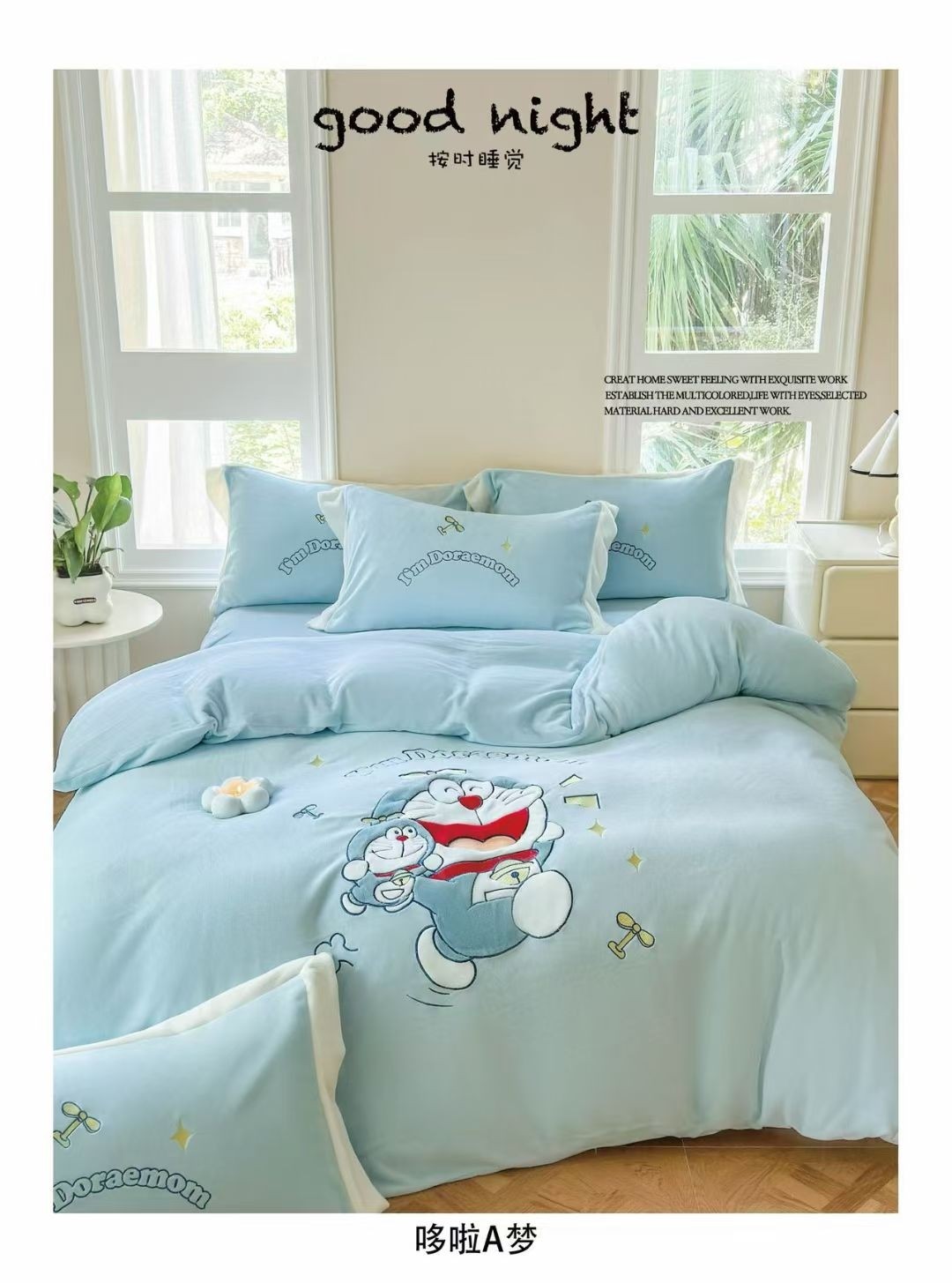 冬天哆啦A梦毛巾绣牛奶绒四件套双面珊绒瑚绒宿舍被套床单三件套