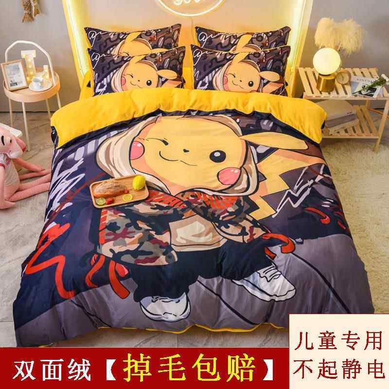 正品啦A梦牛奶绒四件套卡哆通珊瑚绒猫被套学生当保暖儿童叮床品3