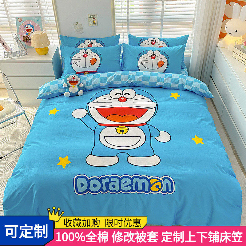 正品纯棉哆啦a梦四件套卡三通男5孩叮当猫全生棉儿童1.件套学床上