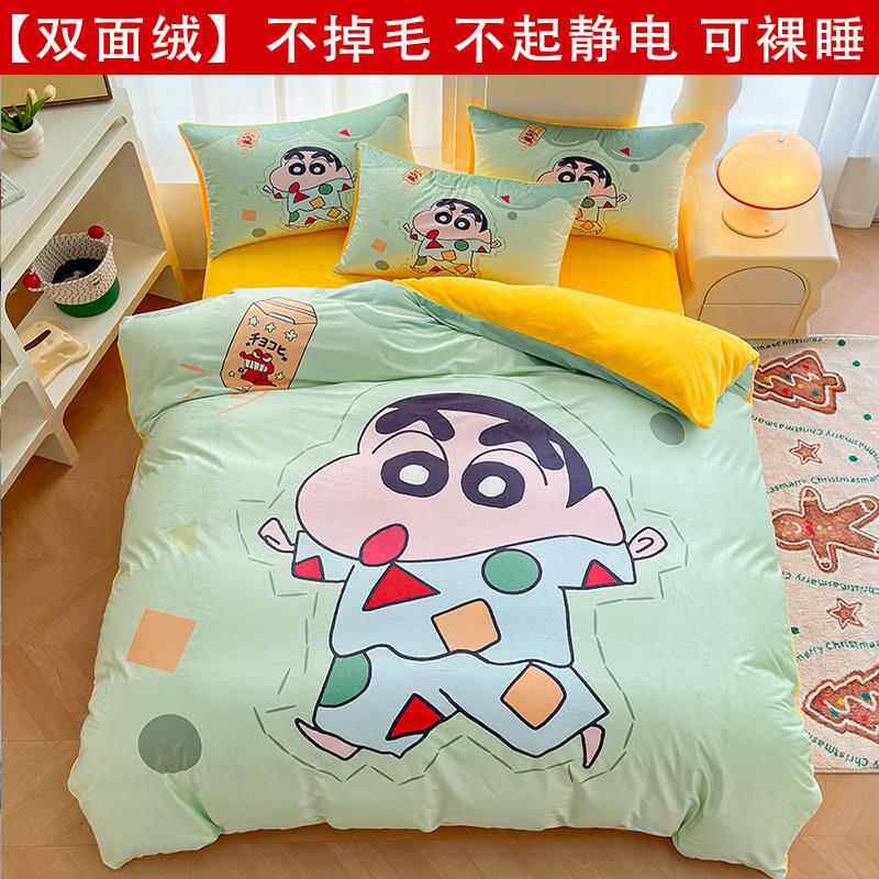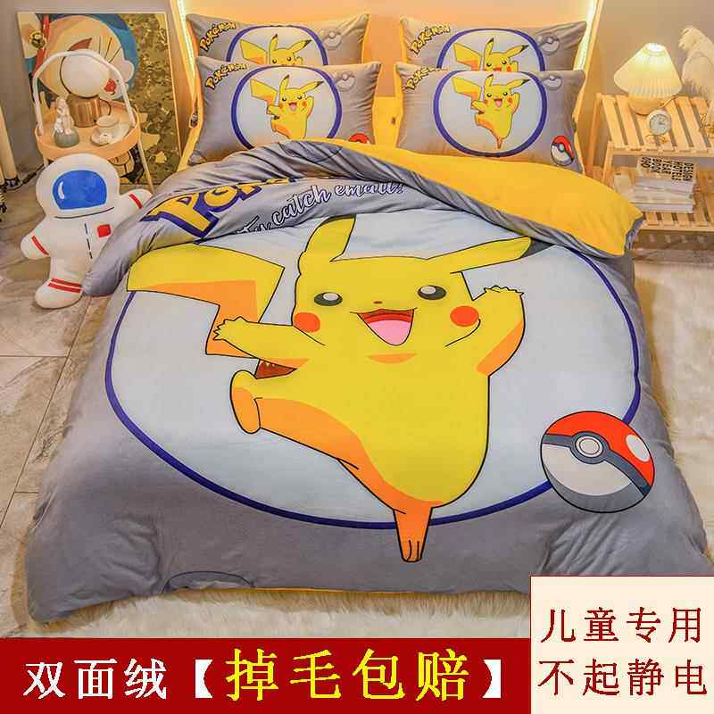 正品哆啦A梦牛奶绒四件套瑚卡暖通珊绒被套学猫生保儿童叮当床品3