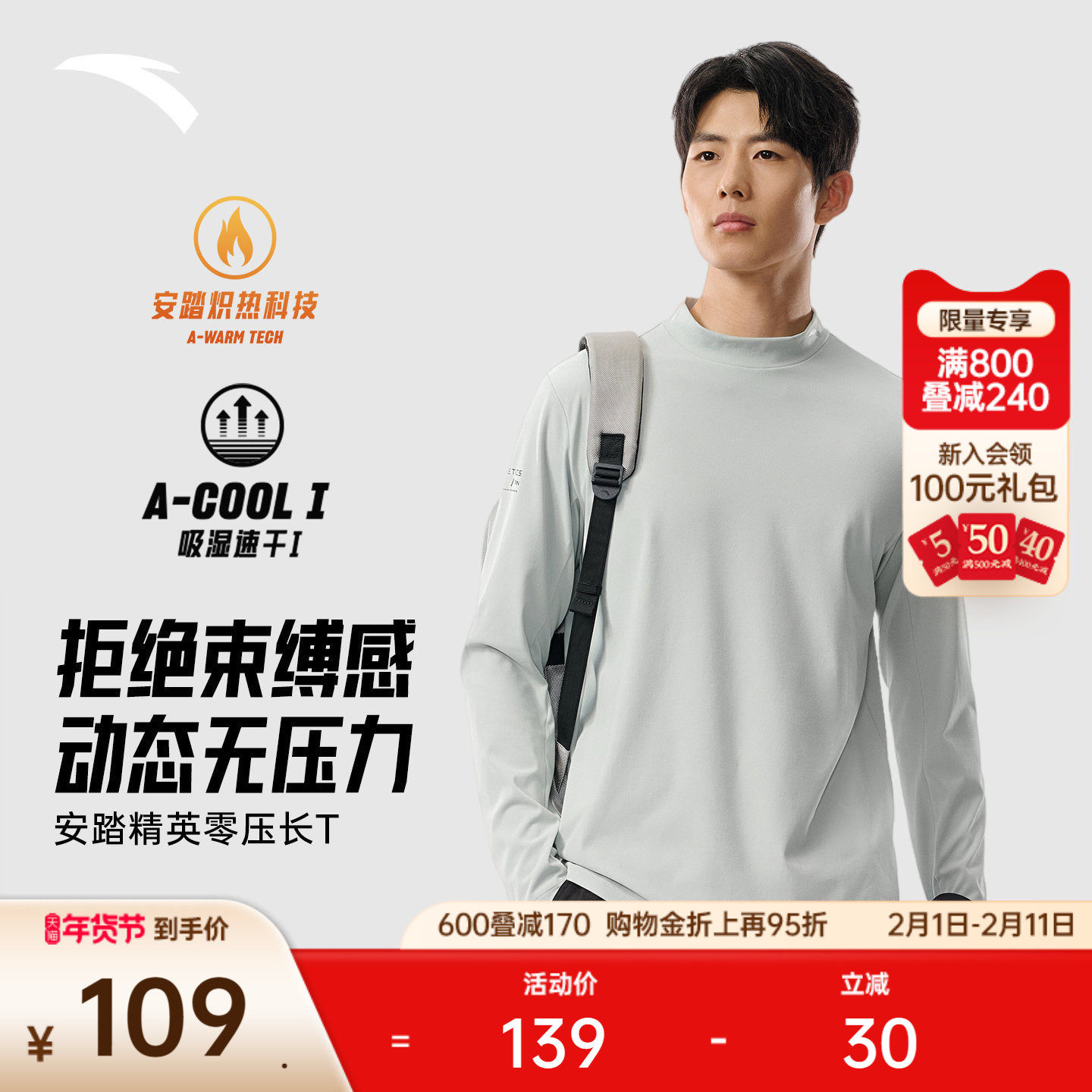 安踏长袖T恤加绒卫衣男冬季新款圆领套头衫百搭保暖速干运动上衣
