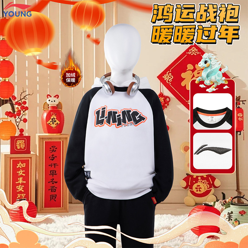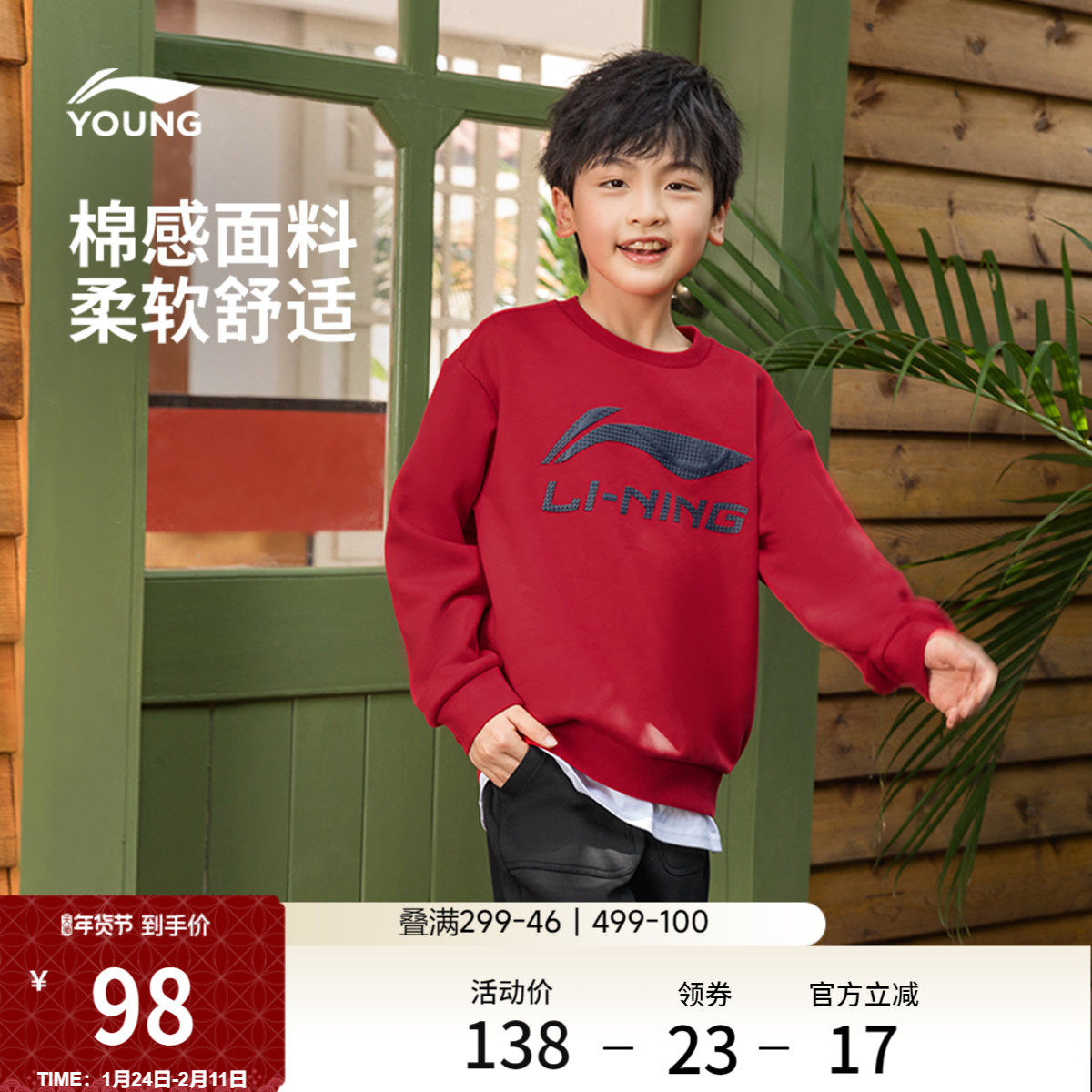 李宁男童卫衣官方旗舰正品套头加绒保暖卫衣舒适休闲运动生活系列