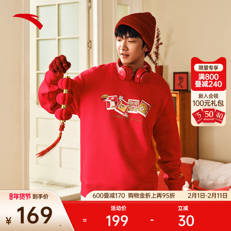 匹克五谷丰登 | 新年圆领卫衣男红色休闲新款套头衫本命年上衣女