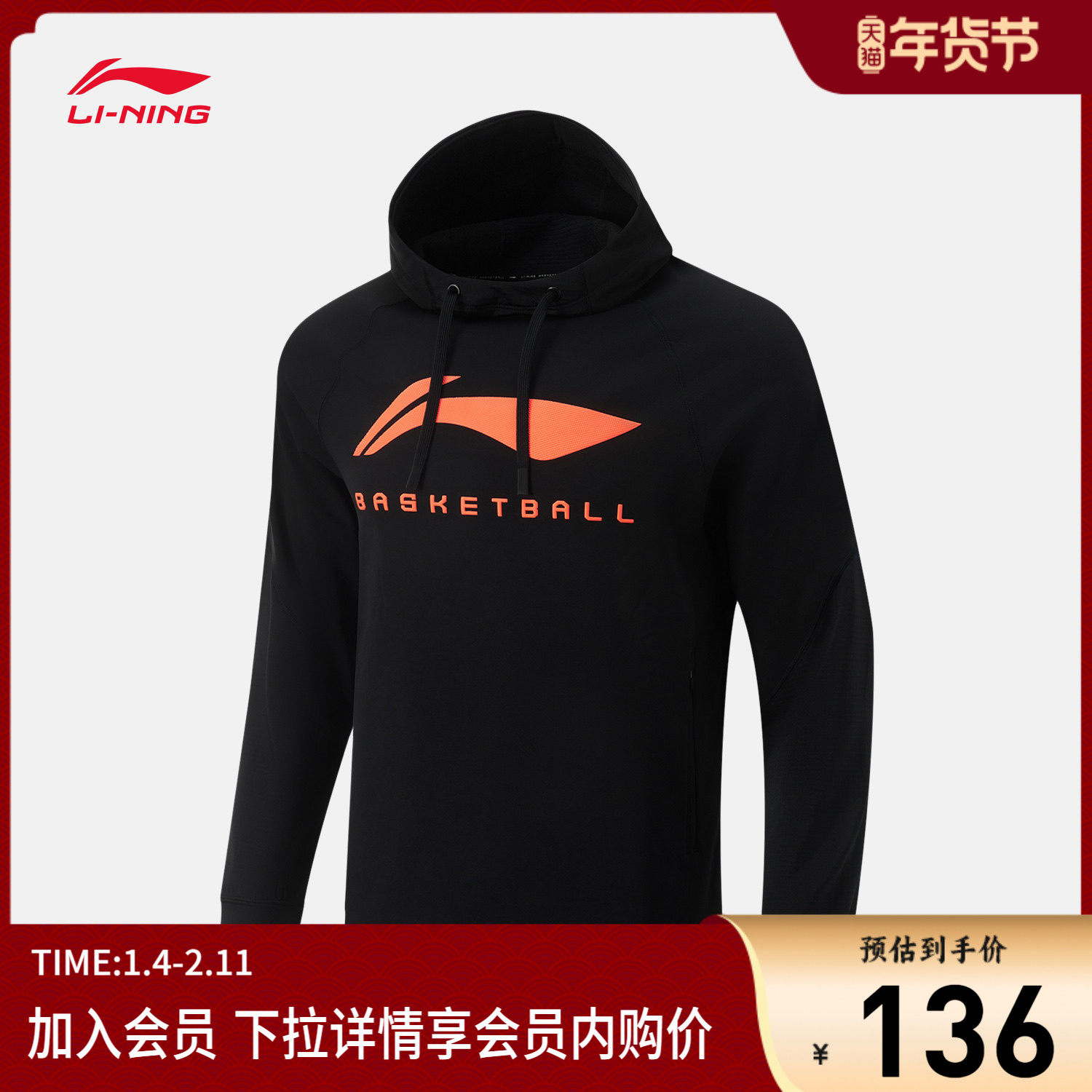 李宁CBA专业篮球系列卫衣男士套头衫长袖保暖连帽秋季针织运动服