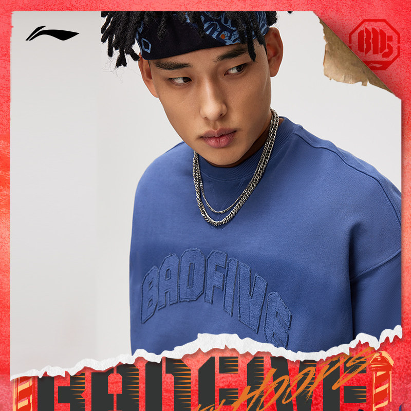 李宁反伍BADFIVE卫衣男士套头衫长袖圆领宽松休闲上衣针织AWDU717