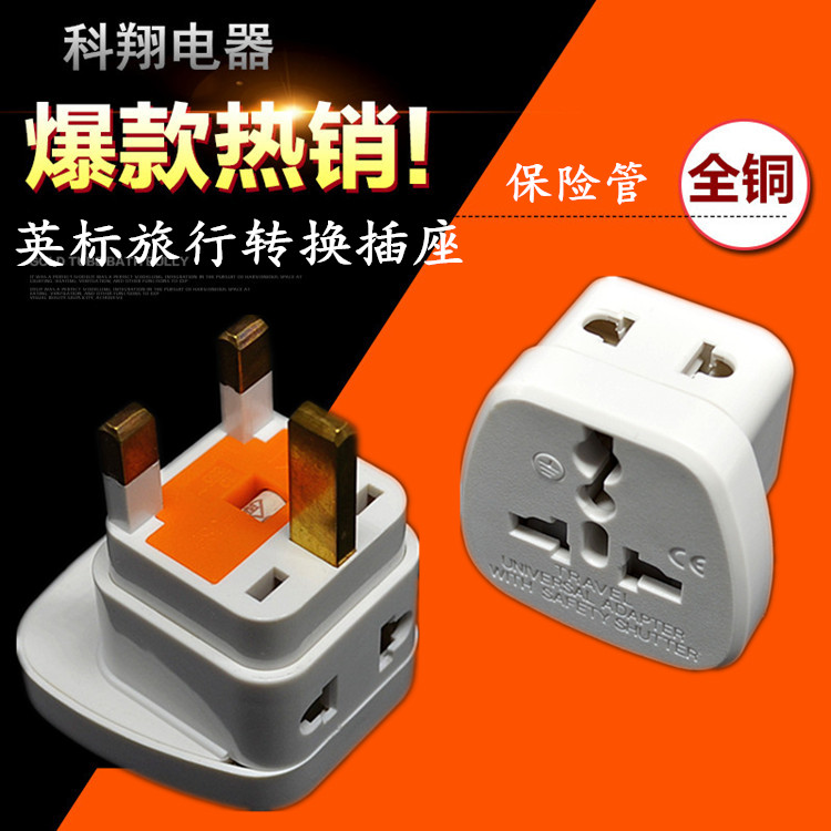 英标旅游转换插座带保险管 英规三方脚 港式旅游电源转换器一转二