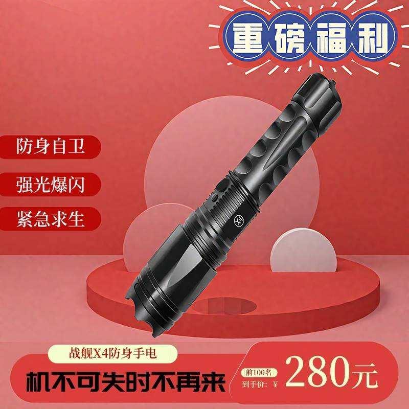 纳丽德P80女士强光防身手电筒女生户外夜路爆闪多功能小型便携