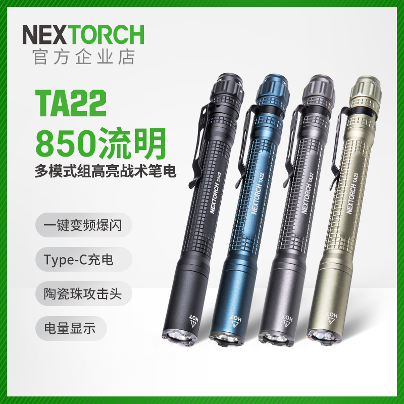 纳丽德ta22战术防身手电笔形高亮强光爆闪便携应急巡逻检修手电筒