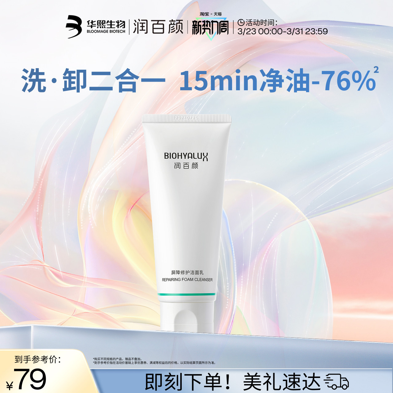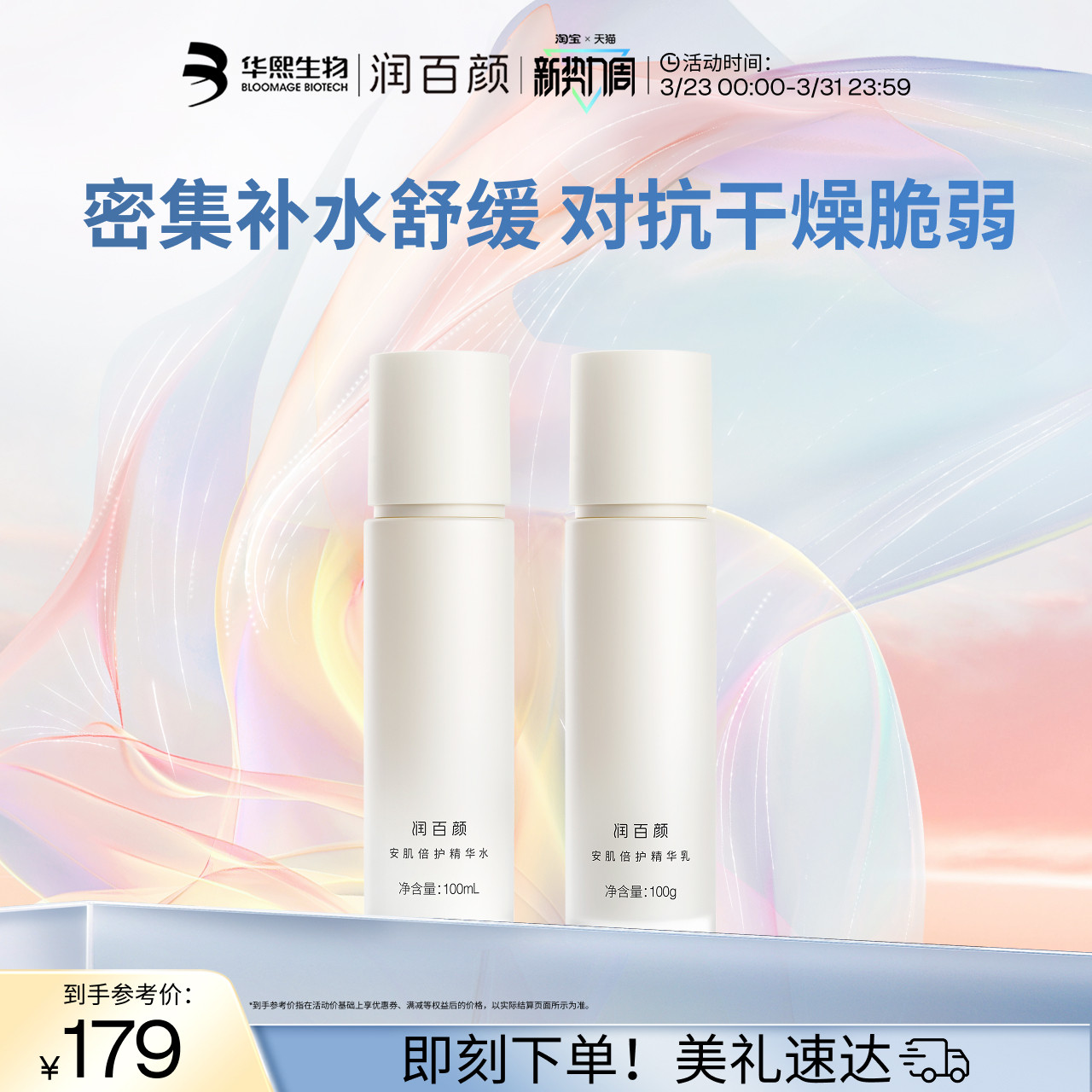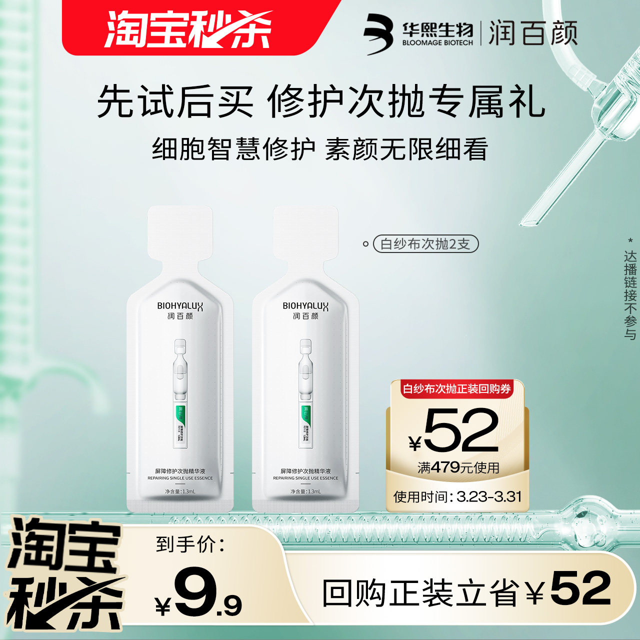 【淘宝秒杀】华熙生物润百颜白纱布次抛精华2支 回购正装立省10元