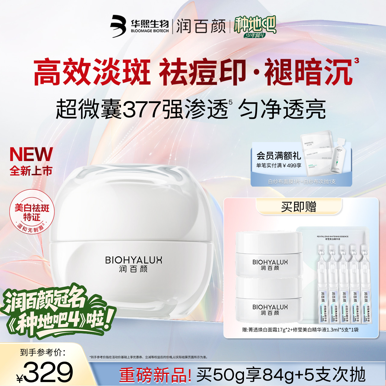 【新品】润百颜超微囊377美白祛斑面霜提亮祛痘印烟酰胺华熙生物