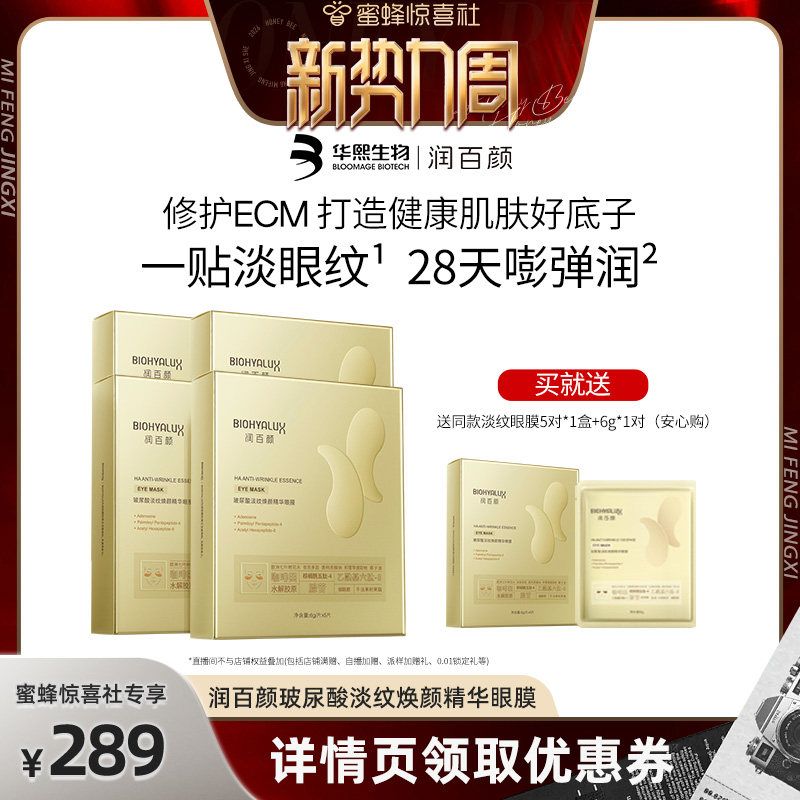 【惊喜新势力周】润百颜淡纹眼膜贴淡化干纹紧致补水保湿华熙生物
