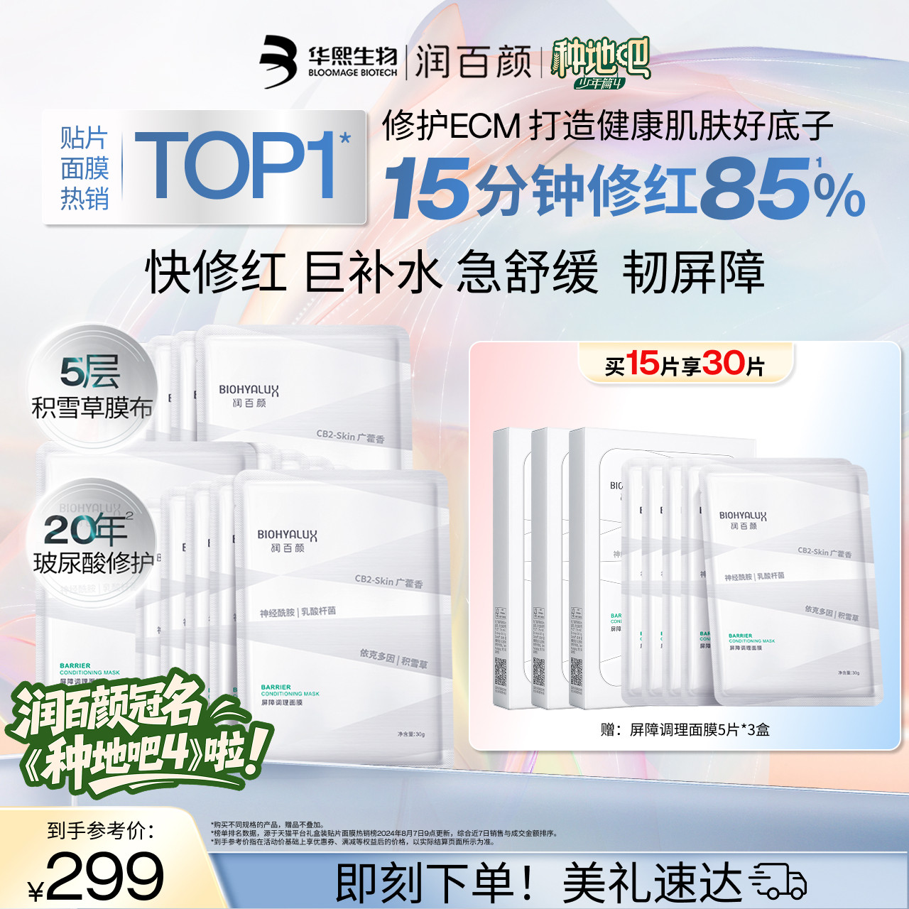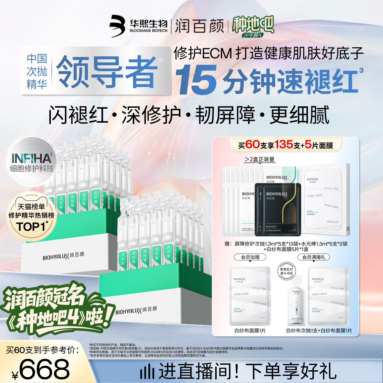 【直播推荐】润百颜白纱布屏障修护次抛精华敏感肌细胞修护ECM