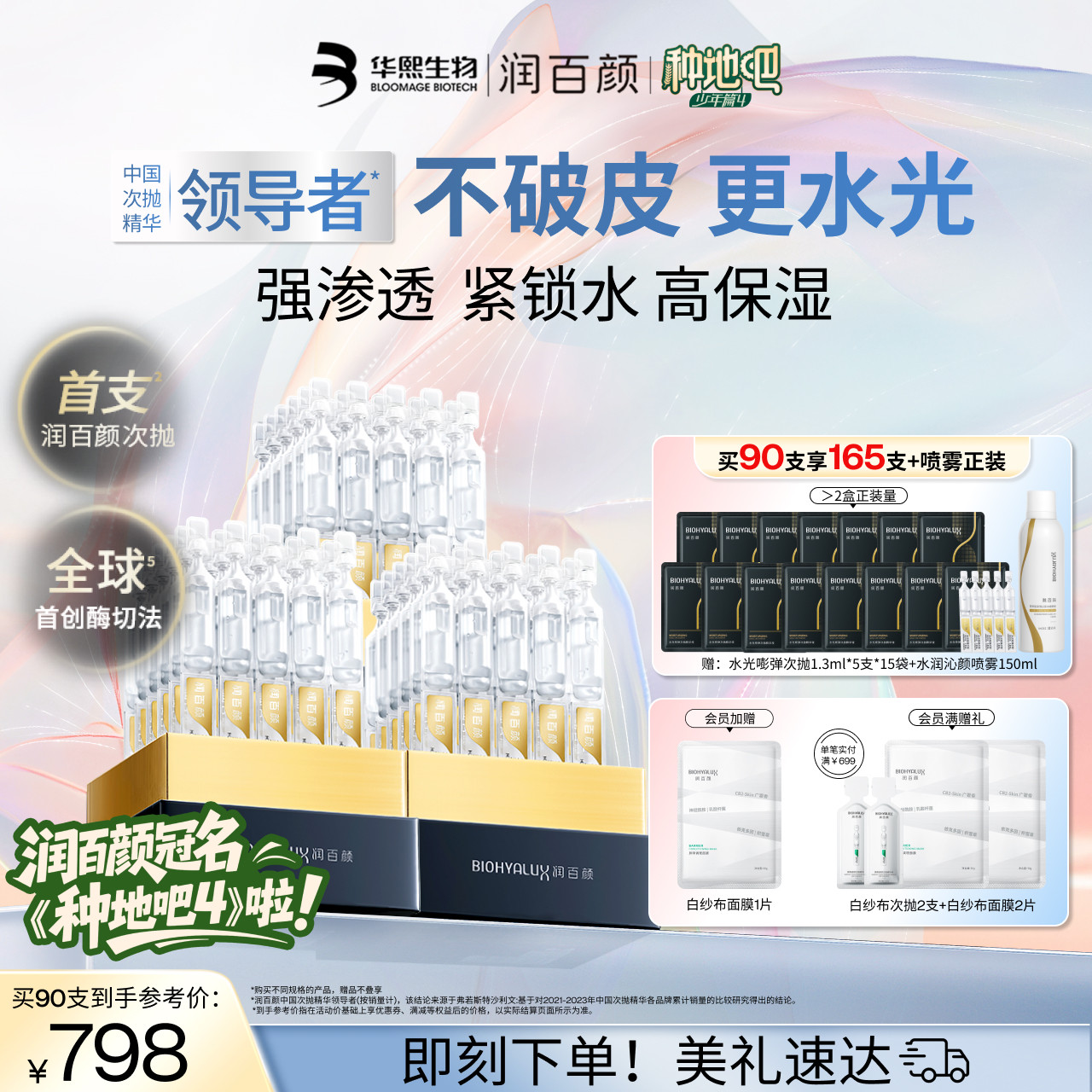 【种地吧推荐】润百颜玻尿酸次抛精华液4.0水光棒水润补水保湿