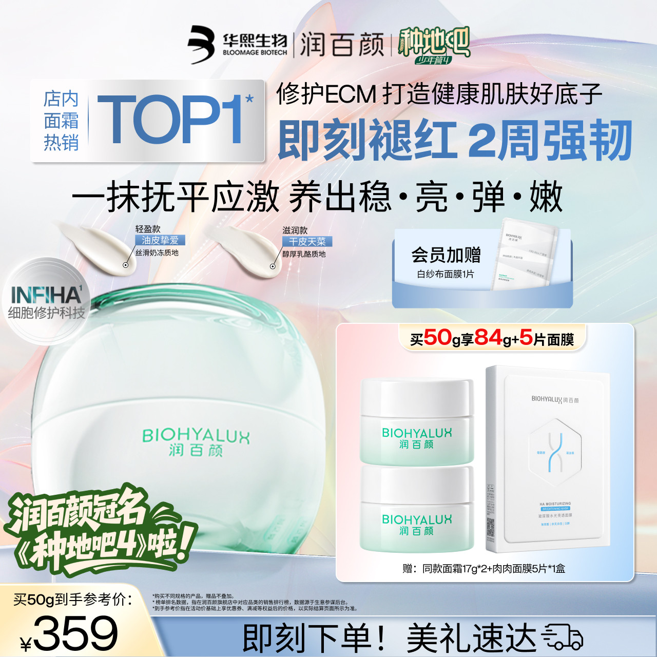 【种地吧推荐】润百颜INFIHA白纱布面霜敏感肌修护泛红修护ECM