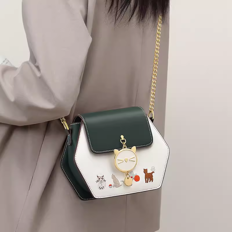 Viney包包2024新款女包斜挎包小猫包夏季真皮单肩链条小包