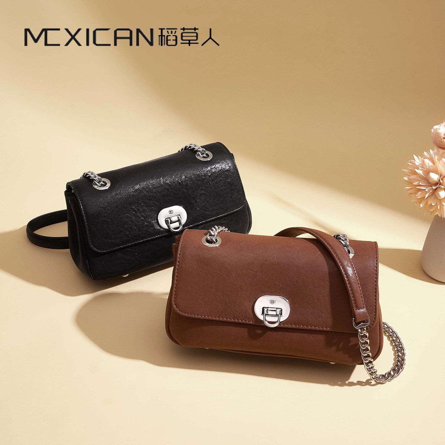 稻草人包包女2025新款秋冬复古单肩链条小包百搭休闲牛皮斜挎包包