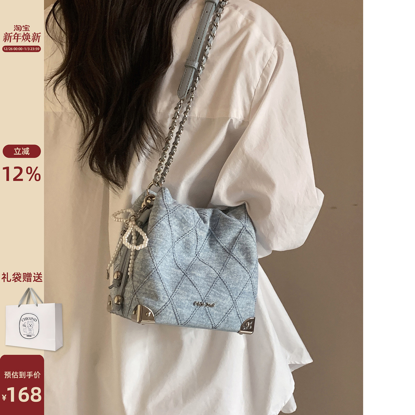 南风Chio2nd 蓝调芭蕾水桶包包女秋冬牛仔蓝精致链条单肩斜挎小包