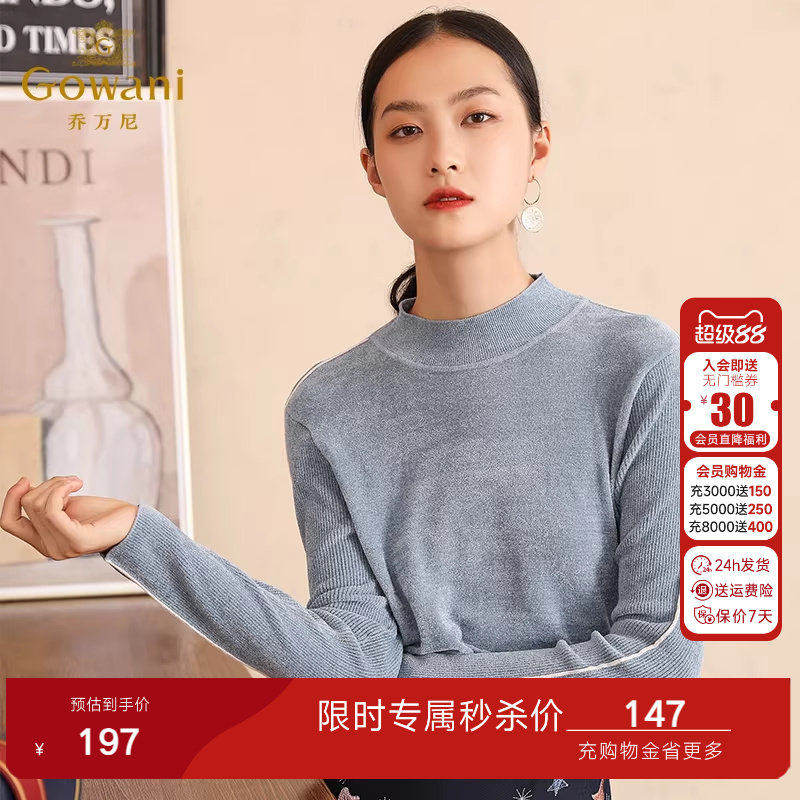 乔万尼女士半高领长袖针织衫修身打底衫保暖上衣毛衫EZ2C106