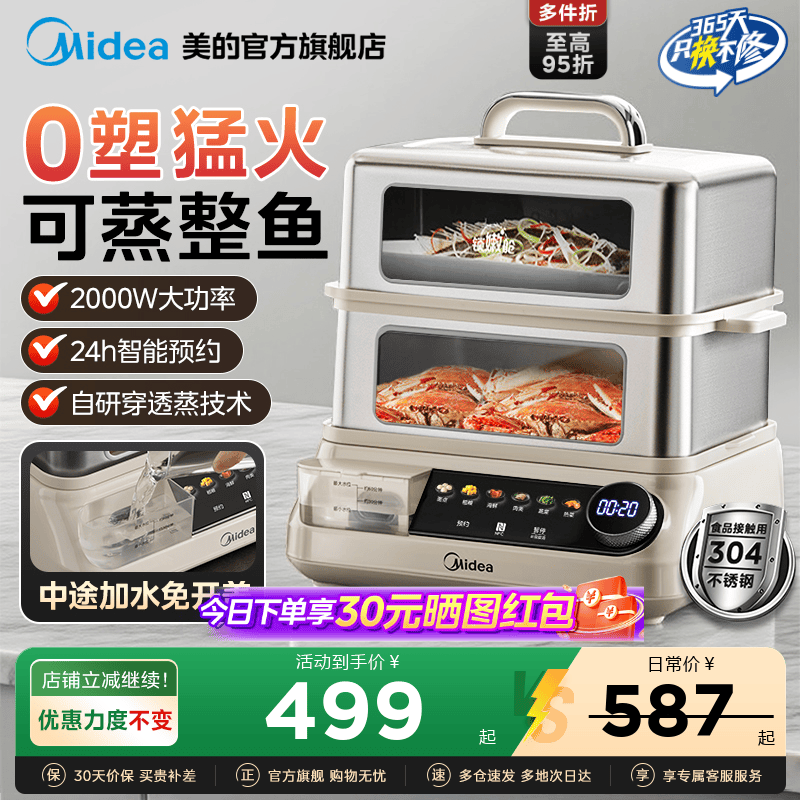 美的电蒸锅不锈钢家用蒸炖多功能一体锅可预约电蒸箱官方旗舰正品