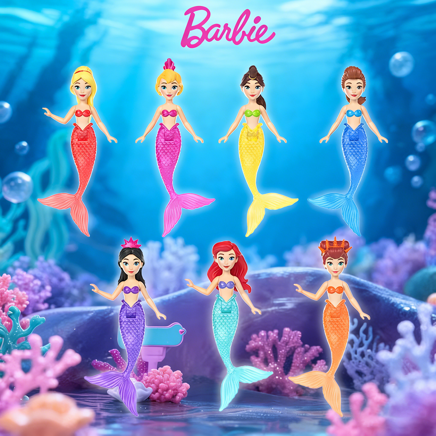 Barbie芭比迪士尼美人鱼爱丽儿公主和姐妹故事套装女孩玩具HLW96