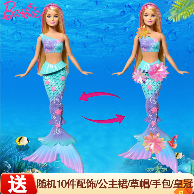 芭比美人鱼娃娃公主玩具可下水衣服带声光电套装HBW90女孩礼物