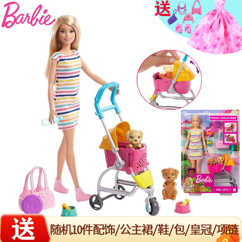 芭比娃娃Barbie芭比萌宠出行套装过家家玩具女孩公主换装生日礼物