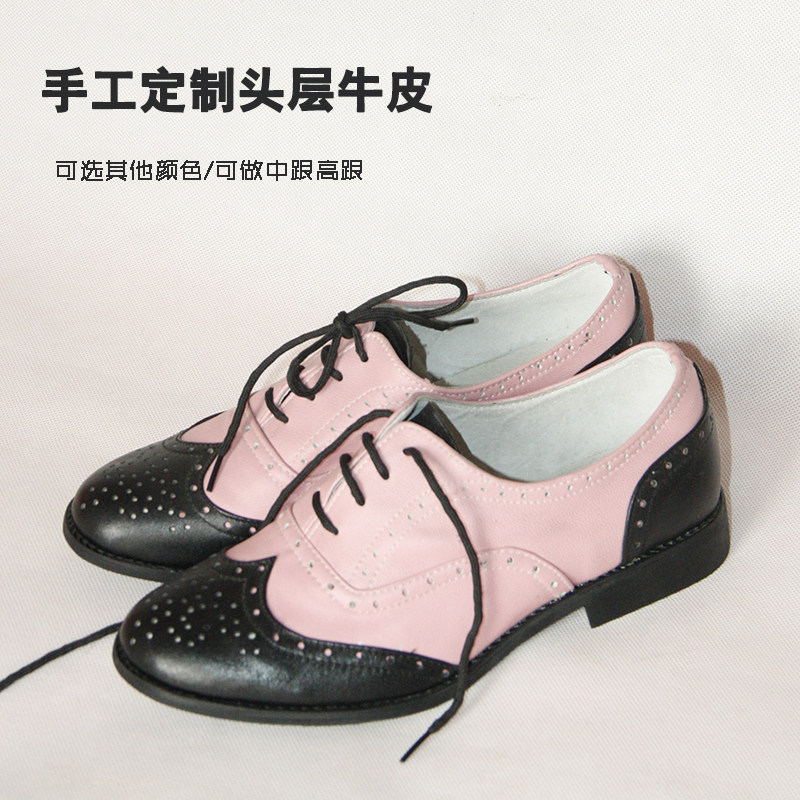 定制手工鞋英伦复古小白鞋牛皮镂空真皮绅士鞋雕花布洛克男女情侣