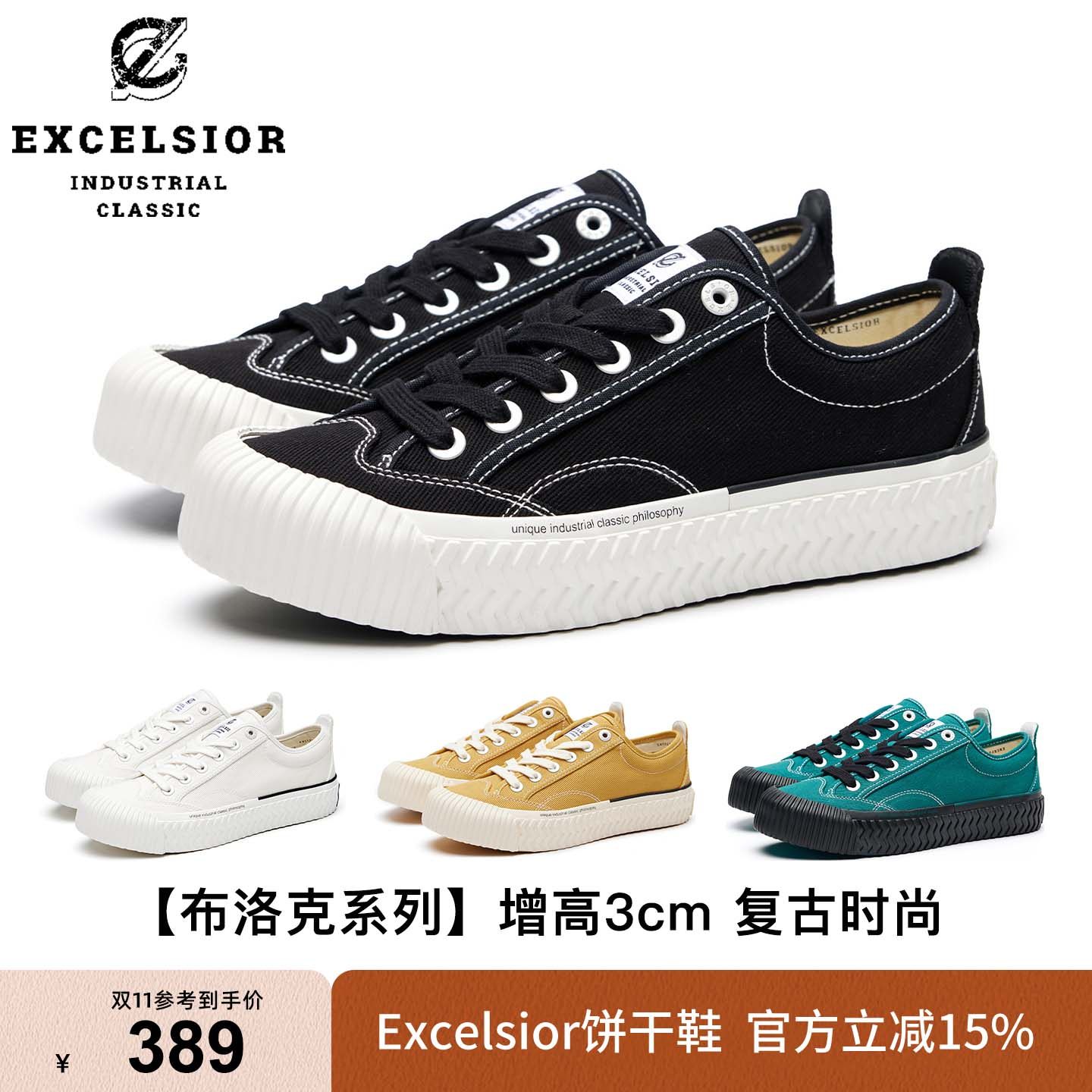 【布洛克系列】excelsior饼干鞋官方 增高女鞋小白鞋厚底帆布鞋男