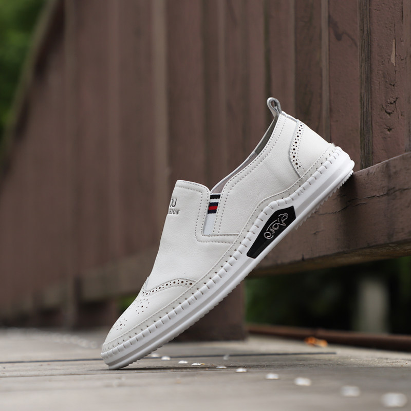 春季新潮男士真皮板鞋经典款布洛克雕花厚软底轻便透气时尚小白鞋