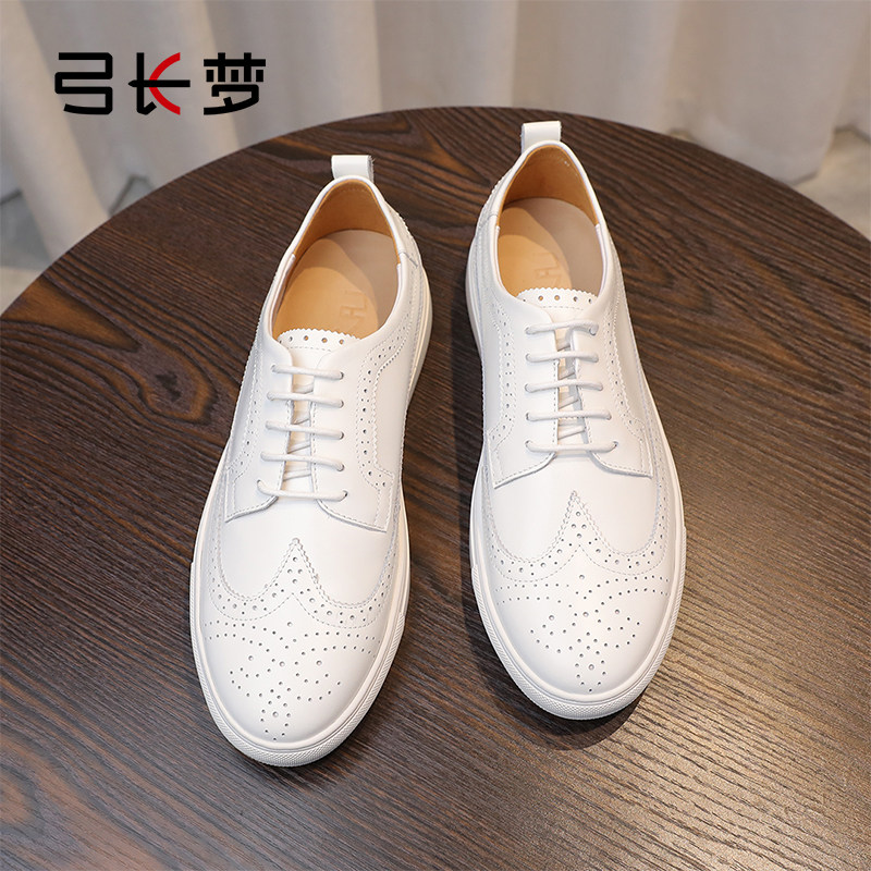 【质保90天】弓长梦布洛克雕花商务休闲皮鞋英伦风真皮手工小白鞋